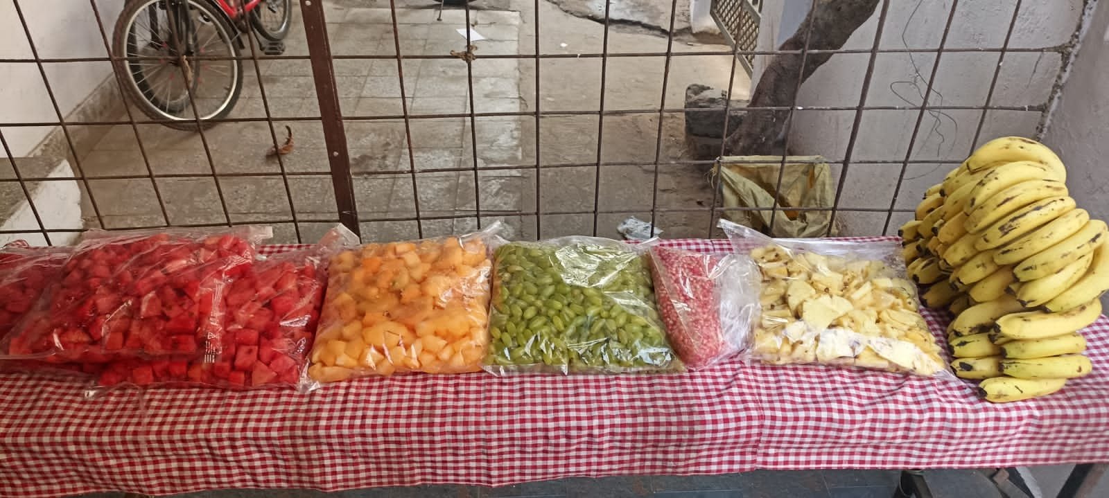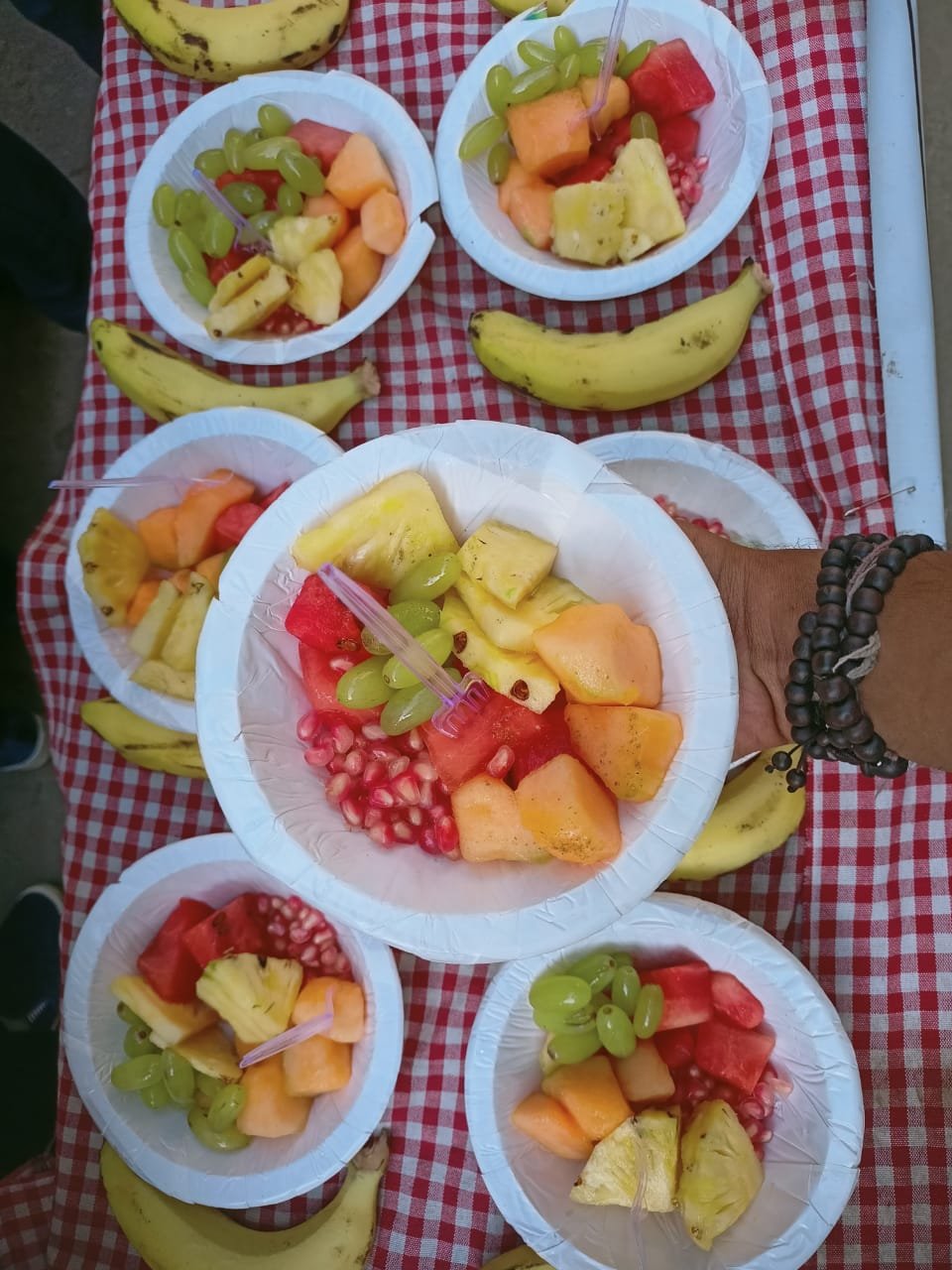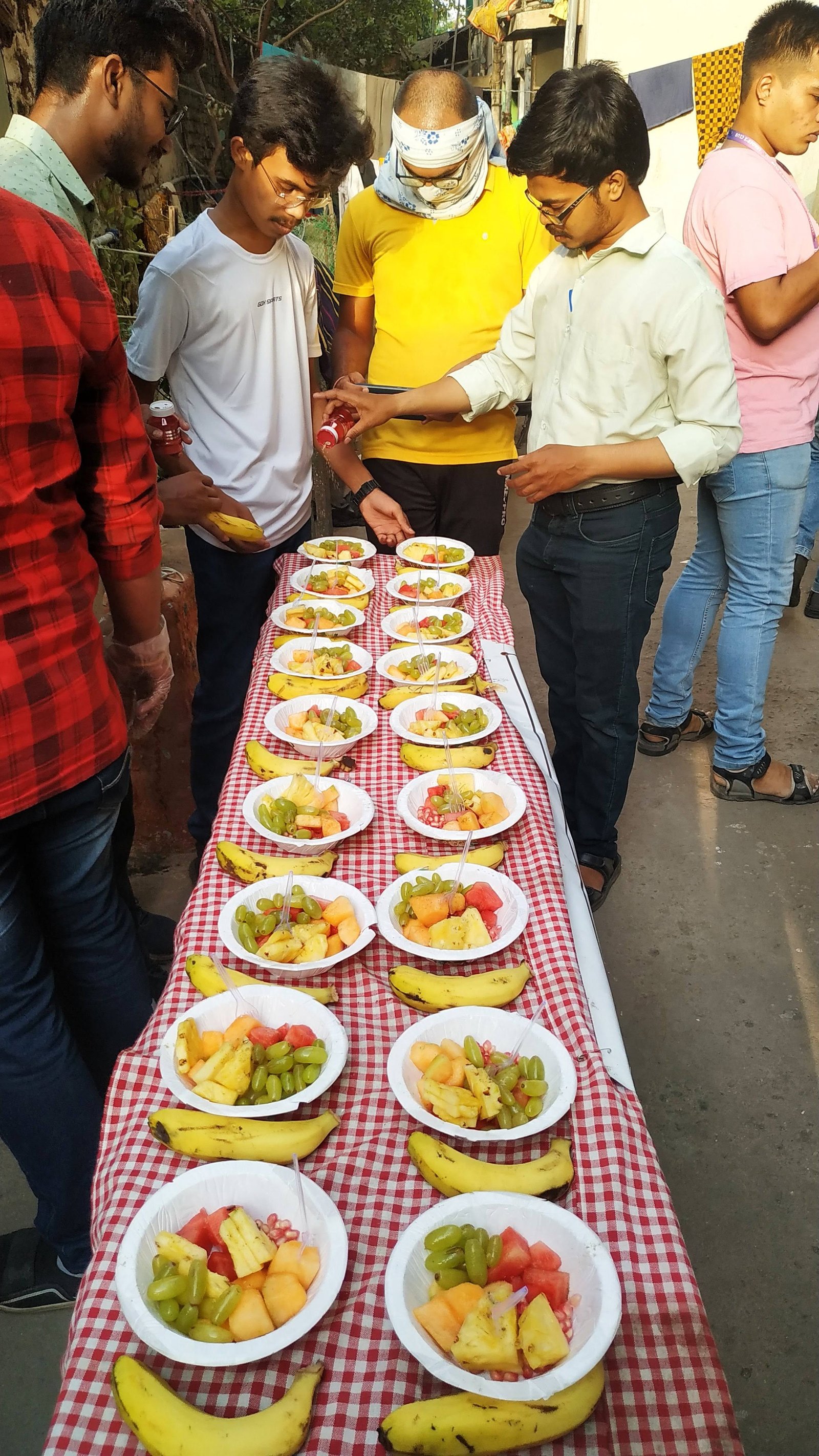 Fruits were donated to 60+ kids. Fruits included Grapes,Watermelon, Musk Melon,Pineapple,Pomegranate & Bananas. Hygiene was maintained throughout the process.