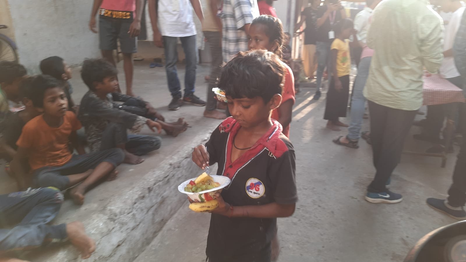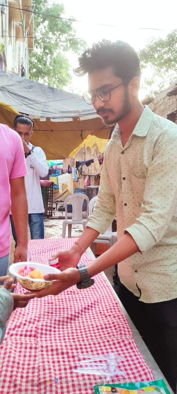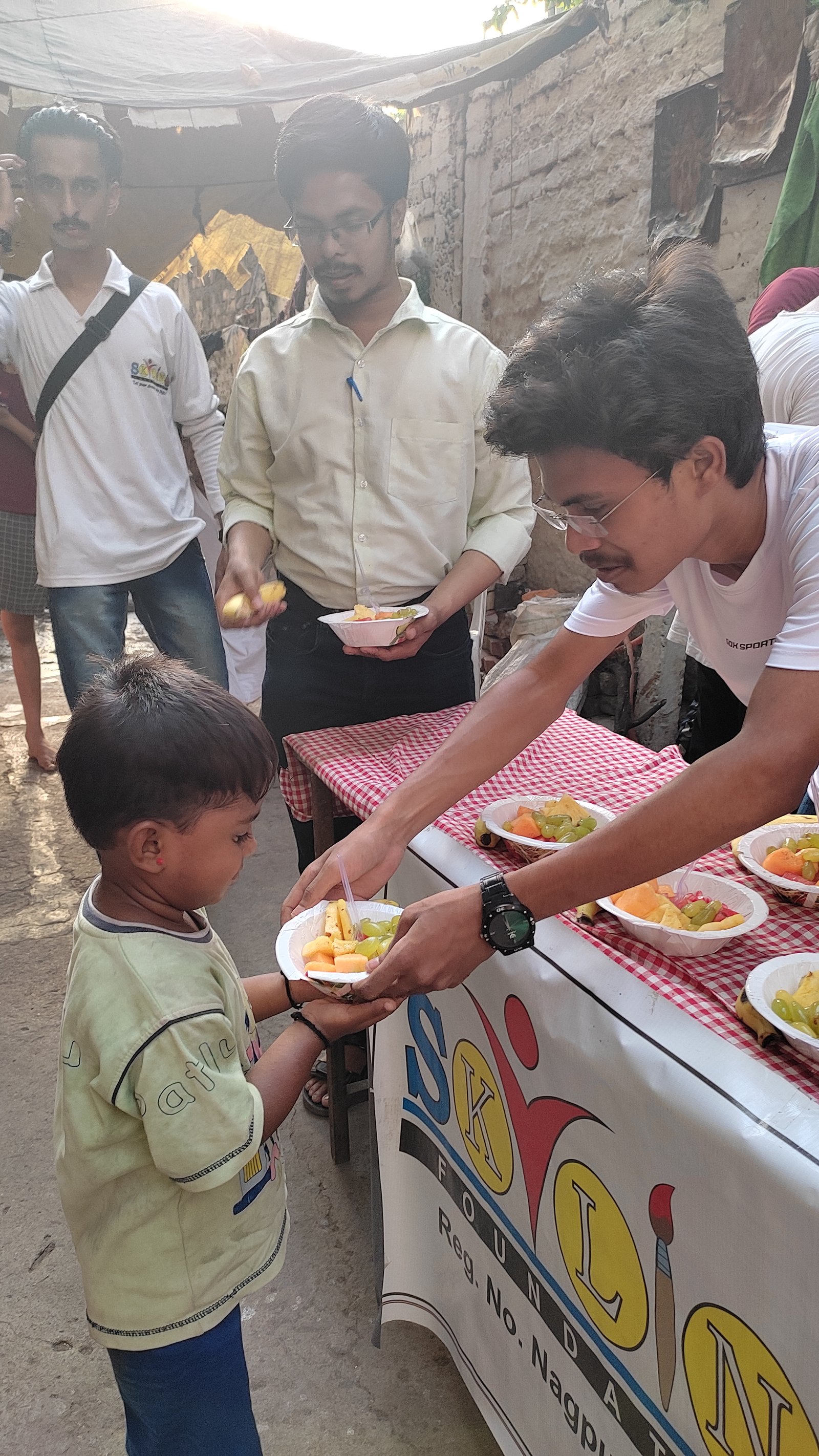 Skyline Foundation donated fruits to the kids living in a slum near Sakkardara Square, Nagpur on Sunday 15th May 2022 to celebrate its consecutive 225th Sunday session.